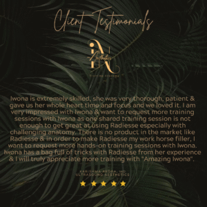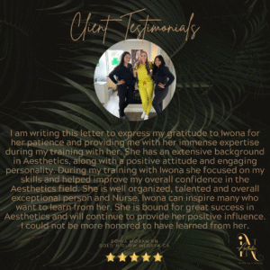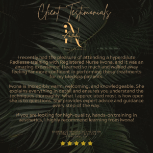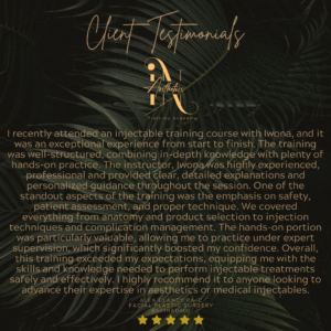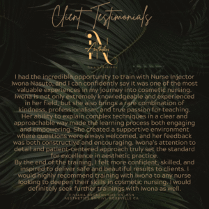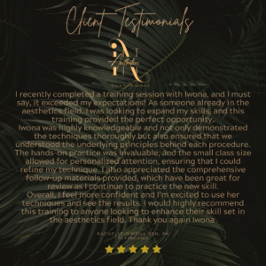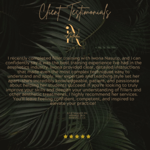 TestimonialsAt IN Aesthetics Training Academy, we don’t just train injectors, we empower them to thrive with confidence, precision, and artistry. Here’s what our students have to say about their experience: